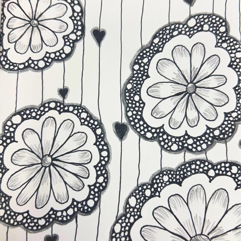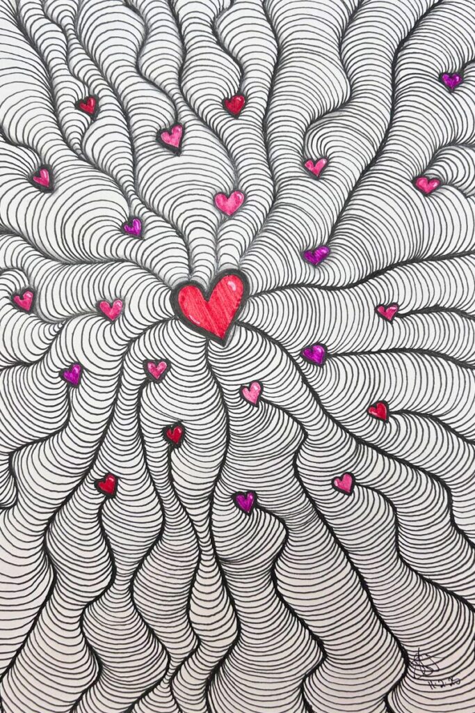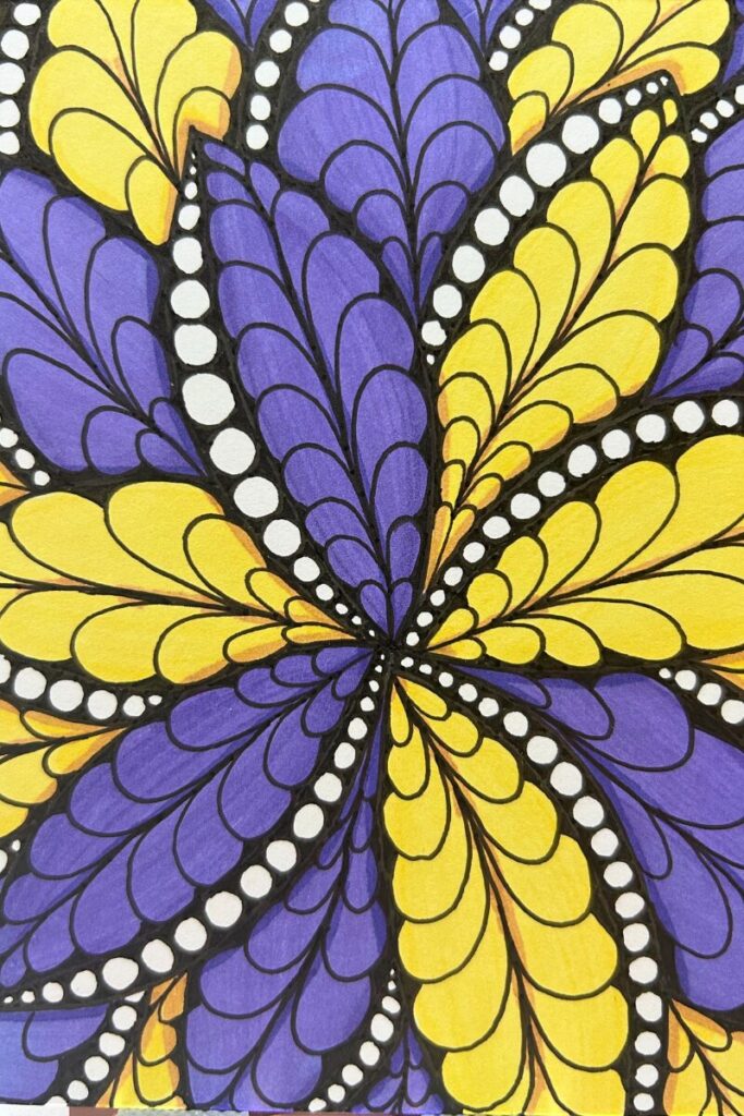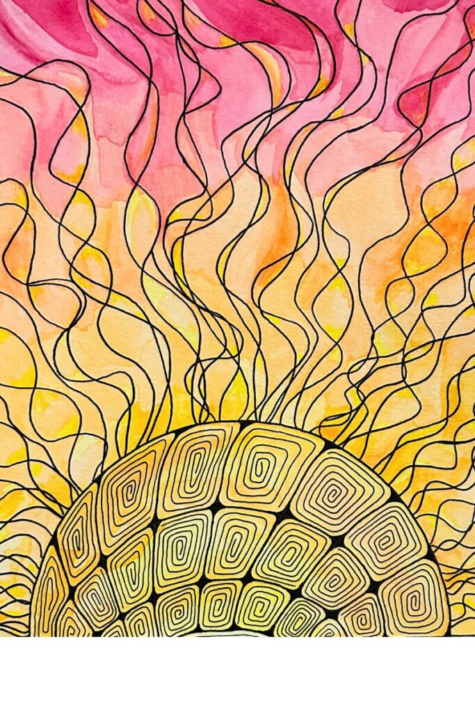 My art journey began as a simple hobby with a pen and a small notebook. Once I discovered them, I couldn’t get enough zentangles and doodles. It was so therapeutic. Then I added watercolors and dabbled in acrylic painting.